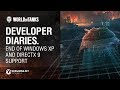 Greetings, tankers! In this episode of Developer Diaries, we will talk about ending the support for Windows XP, Windows Vista, and DirectX 9. Starting this spring, we can't guarantee the stable performance of World of Tanks on this software. There are several reasons for this. Watch this video to learn more. Enjoy!
